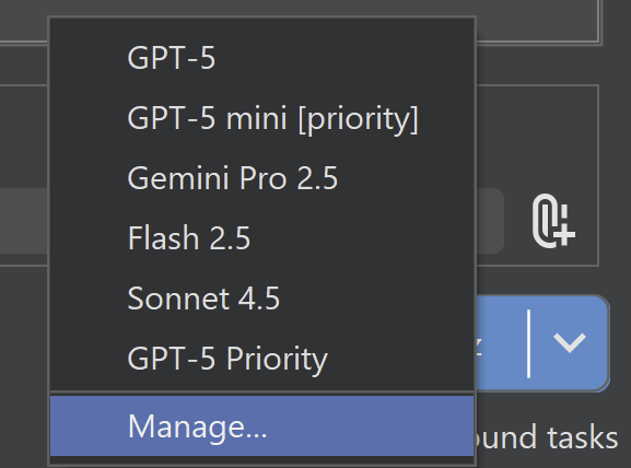 Select Manage in the model dropdown next to the Lutz button to configure your models. (This is also available in the global Settings dialog.)