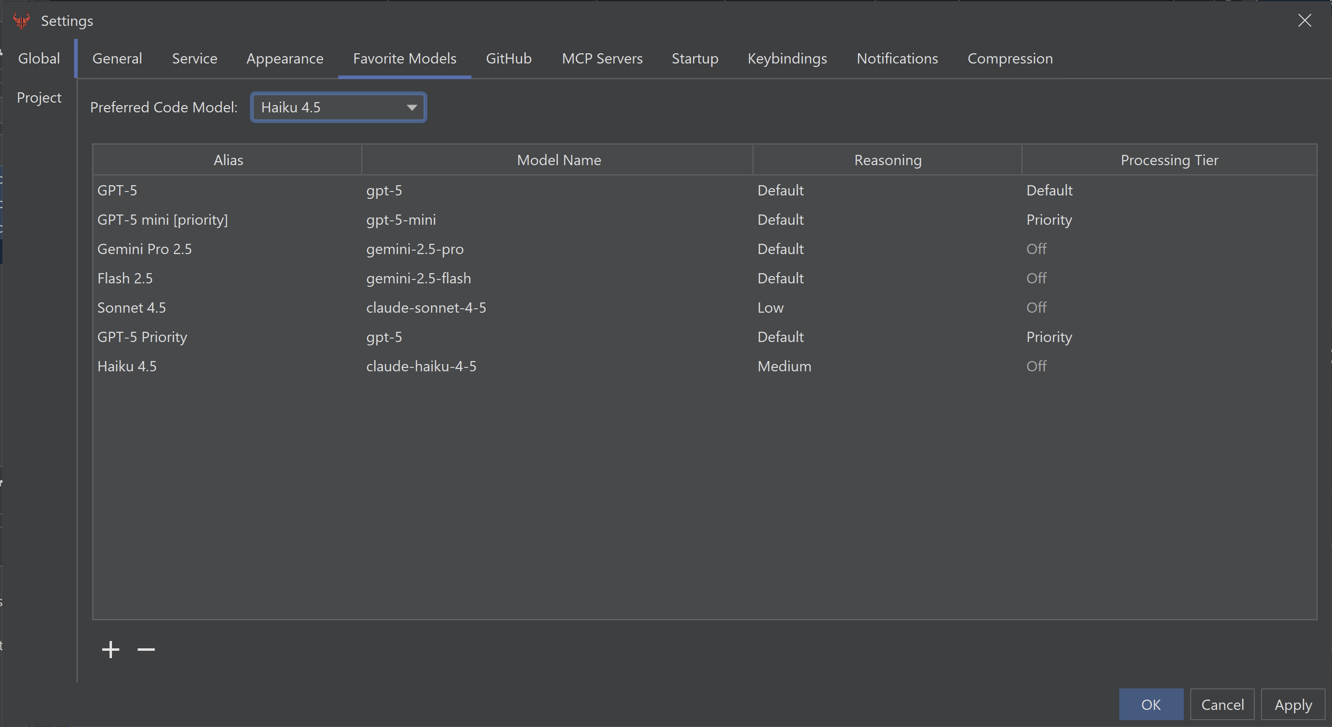 This is also where you can set your preferred code model. This is used in Lutz Mode for the coding sub-tasks, while the model from the Instructions dropdown is used for planning. This allows you to use a faster/cheaper model like Haiku for coding, while keeping important planning running on a smarter/more expensive model.