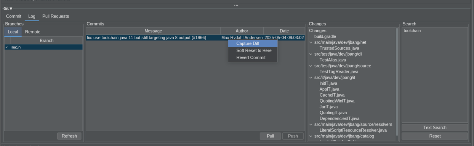 - AI-powered cherry-pick: capture a diff from an old branch and tell Brokk to apply it to the current working tree.