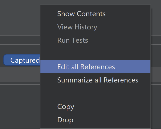 Use this to attach the diff as Context, where it will be visible to Ask actions. You can also right-click on the badge to attach the full (or summarized) contents of all referenced files with a single click: