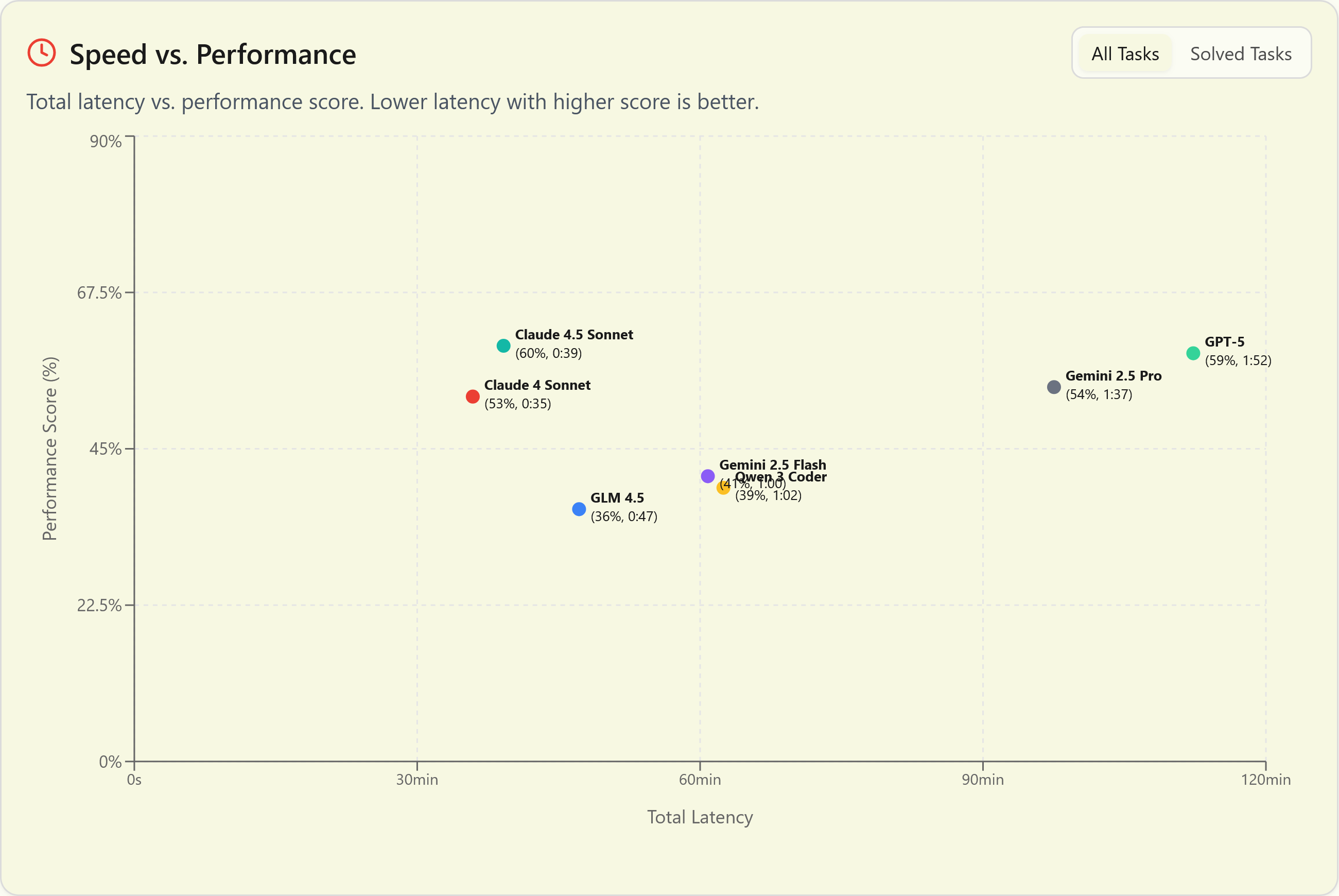 Finally, Sonnet remains the clear leader in speed, with no real competition in sight; it's even faster than Gemini 2.5 Flash. This is part of what makes Sonnet worth the price premium.