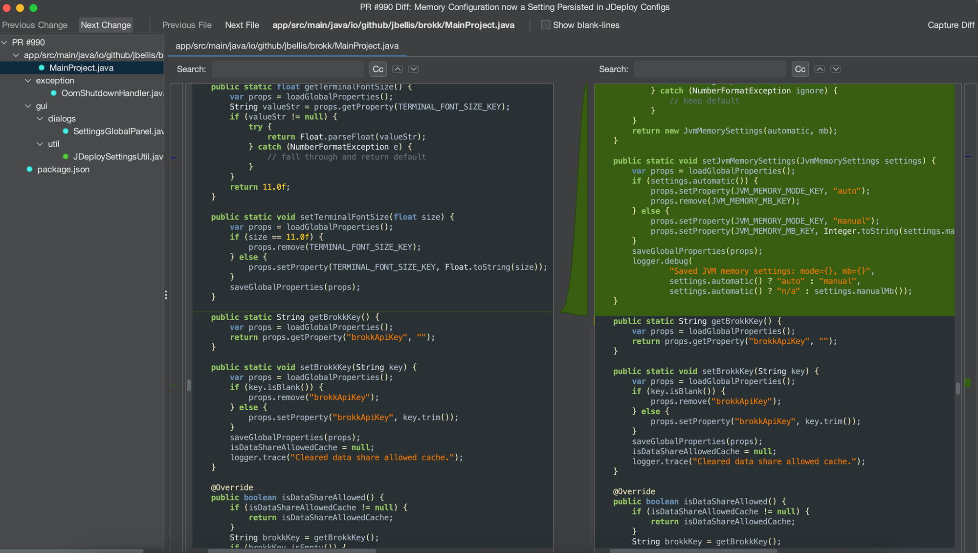 The Pull Requests tab in Brokk shows PRs from your project’s GitHub repository. (If the repo isn’t on GitHub, this tab won’t appear.)