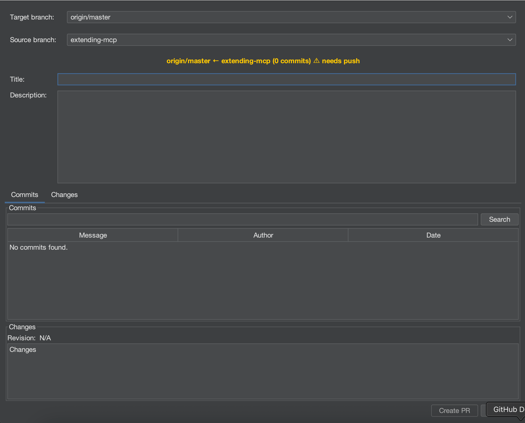 Opening the Create PR Dialog