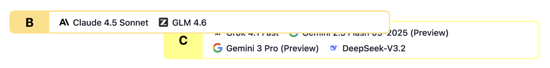 For engineering teams prioritizing privacy or cost control, the allure of self-hosting open-weight models is undeniable, but it comes with a distinct trade-off we will call the "Reliability Gap". While strong contenders like DeepSeek-V3.2 and GLM-4.6 are closing the distance on static benchmarks, our Brokk Power Ranking data suggests that open-weight models generally lag about six months behind the frontier in agentic robustness. Specifically, these models struggle in the self-correction phase of our Edit+Test loop; they can generate code, but often require significantly more iterations and human babysitting to fix bugs compared to a high-efficiency S-Tier daily driver like Claude 4.5 Haiku.